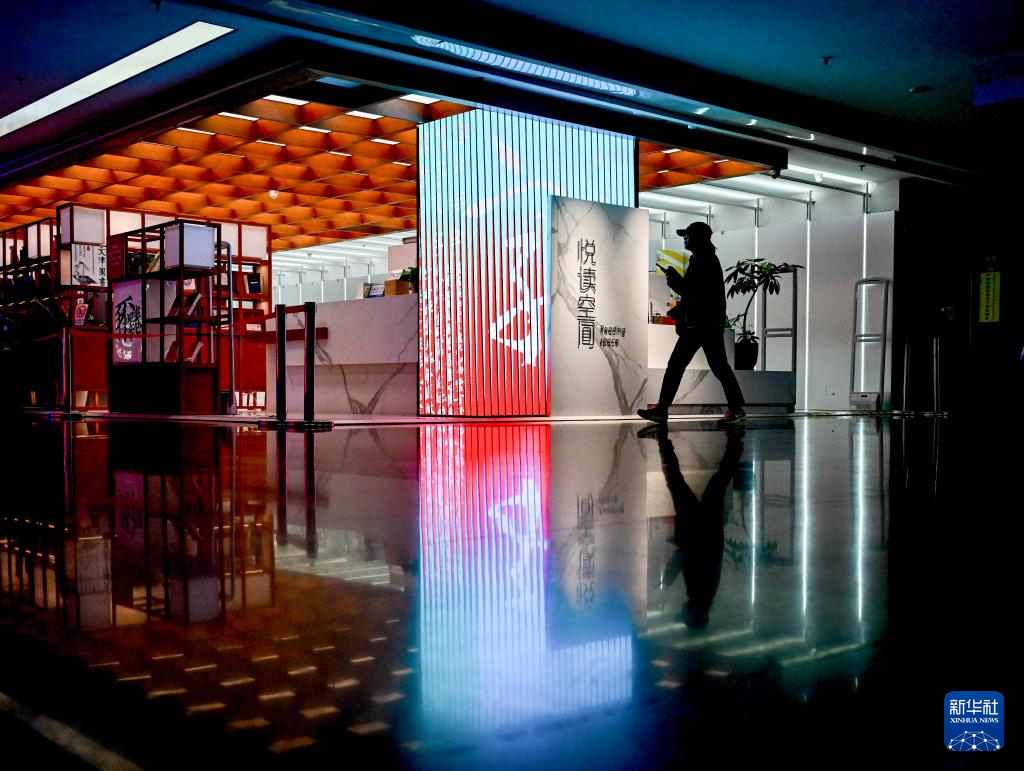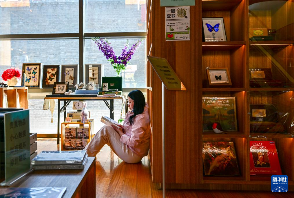 读者在位于北京市西城区佟麟阁路的模范书局·诗空间阅读学习(3月28日摄)。