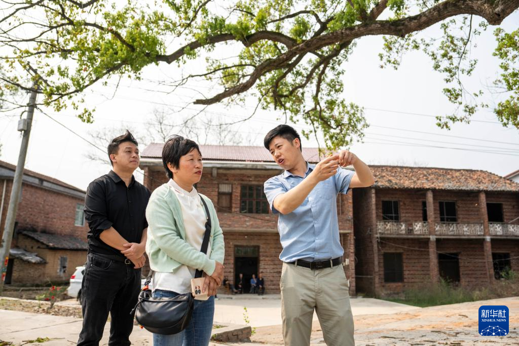 3月27日,在衡阳市衡山县长江镇新源村古树救治现场,吴磊(右一)与县林业部门工作人员讨论古树救治方案。