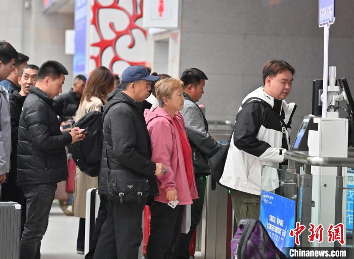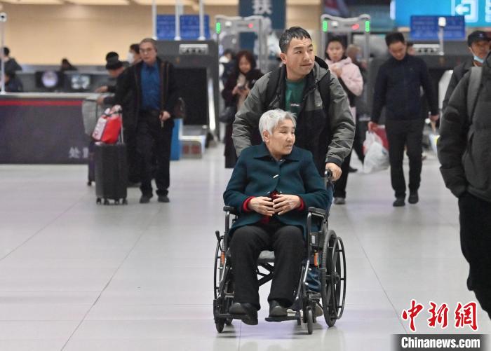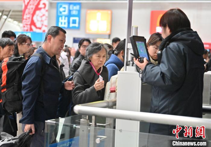4月1日,老年人在吉林长春站候车室检票乘车。当天,中国国家铁路集团有限公司开始对年满60周岁持居民身份证、港澳居民居住证、台湾居民居住证、港澳居民来往内地通行证、台湾居民来往大陆通行证、外国人永久居留身份证的老年常旅客实施会员积分优惠措施,积分可兑换火车票。中新社记者张瑶 摄