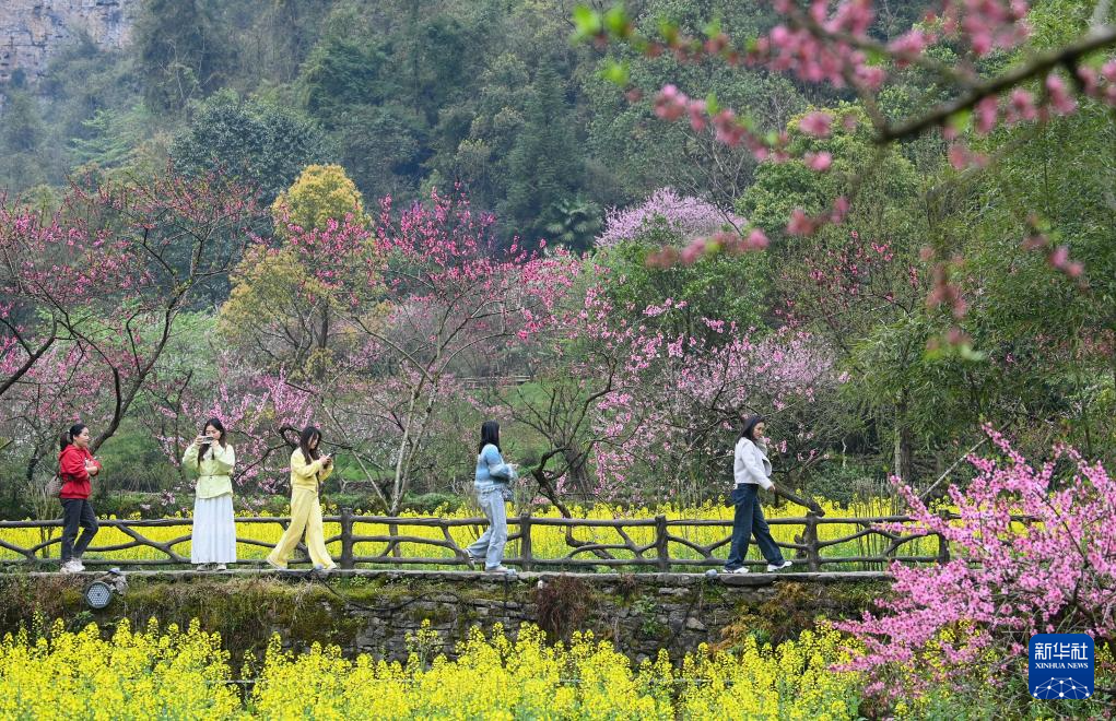 4月4日,游客在重庆市酉阳土家族苗族自治县桃花源景区踏青赏花。