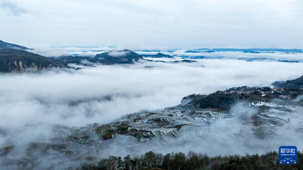 这是2月26日在云南省元阳县拍摄的哈尼梯田风光(无人机照片)。