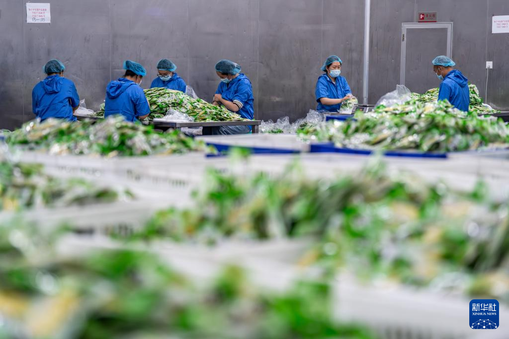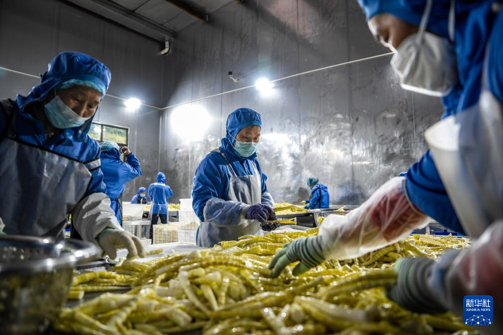5月14日,在盐津县中和镇中和村竹产业园区,工人在分拣竹笋。