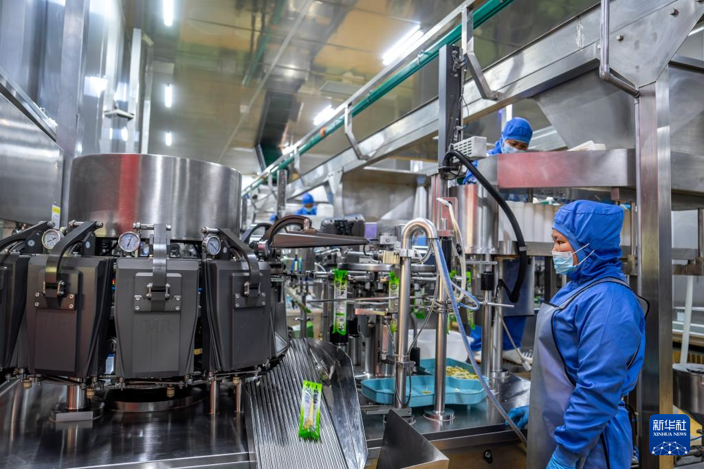 5月14日,在盐津县中和镇中和村竹产业园区,工人在包装竹笋产品。
