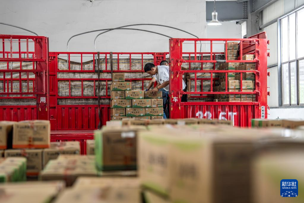 5月14日,在盐津县中和镇中和村竹产业园区,工人将竹笋产品装车。