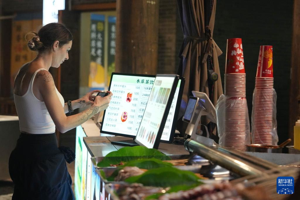 5月20日,澳大利亚游客在张家界市七十二奇楼景区购买饮品。