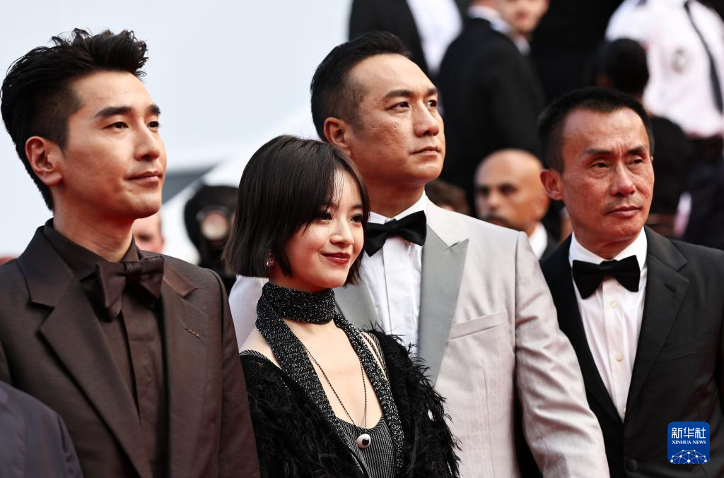 5月24日,在法国南部小城戛纳,中国影片《狂野时代》主创人员踏上闭幕式红毯。