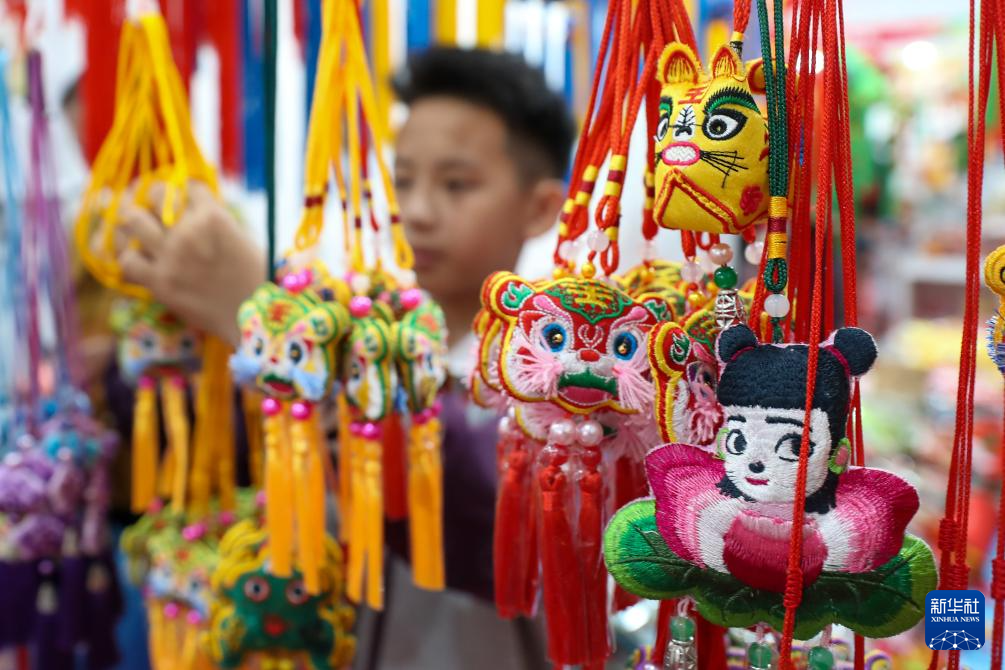 佩戴香包,是我国多地端午节传统习俗之一。5月29日至6月2日,以“香约庆阳·包容天下”为主题的第二十届庆阳香包民俗文化节在甘肃省庆阳市西峰区举行,非遗沉浸式体验区和街巷集市挂满了各式各样的香包,吸引市民参观选购。