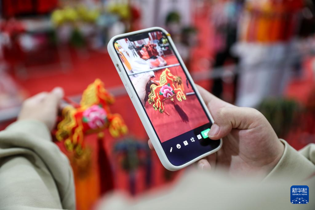5月29日,市民在庆阳香包民俗文化节非遗沉浸体验区拍摄生肖“马”香包。