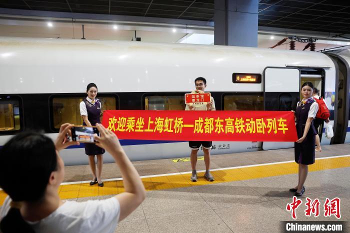 中新网上海7月2日电 (记者殷立勤)7月2日18时22分,上海地区开往川渝方向的“夕发朝至”高铁动卧列车——上海虹桥至成都东D982次,从铁路上海虹桥站发车。