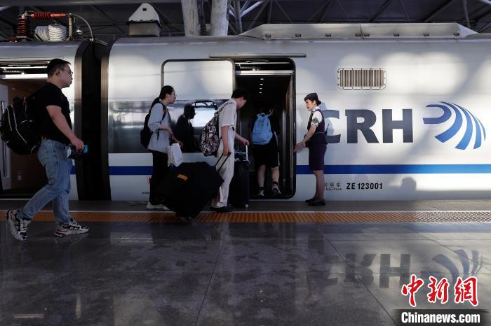 列车长引导旅客安全上车。中新网记者 殷立勤 摄