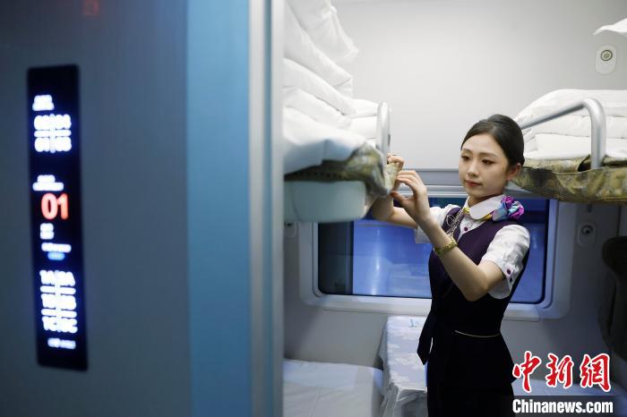 同时,为了着力提升高铁动卧列车内旅客夜间的舒适体验,每个包间内配备了独立瓶装矿泉水、方便区分的四色拖鞋以及助眠耳塞等贴心备品,营造更温馨、便利的“移动宾馆”环境。该趟高铁动卧列车将成为连接长三角与成渝地区的一条崭新纽带,有力促进两地人员往来与经济文化交流。(完)
