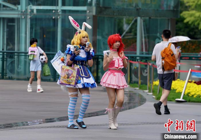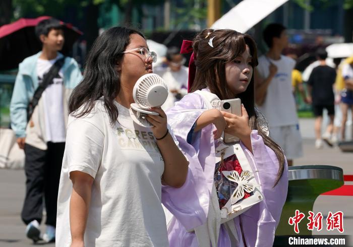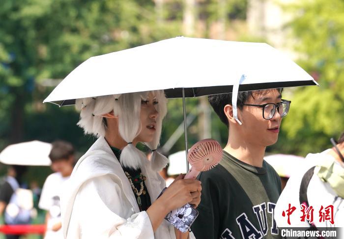 成都市气象台7月13日10时00分发布高温橙色预警信号:预计今日白天成都市武侯区、锦江区、青羊区、成华区、金牛区、青白江区、高新南区和高新西区的所有镇(街道)最高气温将升至35℃以上,东部新区的大部分镇(街道)最高气温将升至38℃以上,高温时段主要出现在今日12-19时。预计未来五天高温天气持续,请注意防范高温带来的不利影响。图为身着Cosplay服装的市民在烈日下出行。中新社记者安源 摄