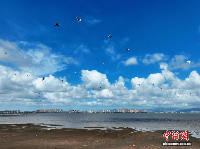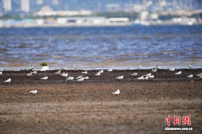 7月23日,黑嘴鸥及白鹭在滨海湿地共同栖息。夏日时节,成群的黑嘴鸥、白鹭、青脚鹬等鸟类在青岛胶州湾国家级海洋公园(红岛段)滨海湿地觅食栖息、更换夏羽,在宁静的滩涂绘就了一幅美好的生态画卷。王海滨摄