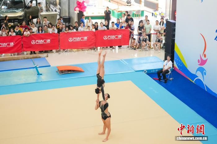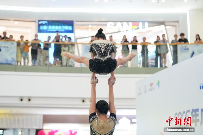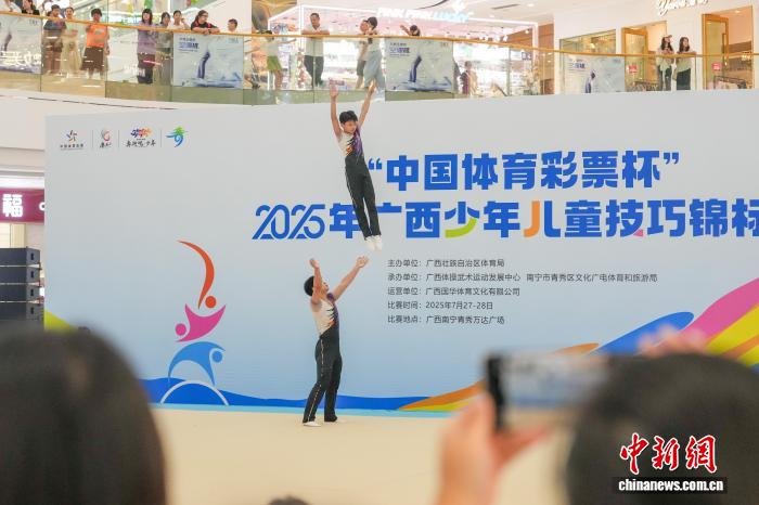 7月27日晚,正在广西南宁青秀万达广场举行的2025广西少年儿童技巧锦标赛吸引不少逛商场的民众观赛。该比赛是2025广西青少年锦标赛的系列赛事之一,以体育赛事“进商圈”为切入点,打破传统体育赛事“场馆封闭、观众单一”的模式,推动体育赛事从“专业赛场”走向“大众生活”。 中新社记者陈冠言 摄