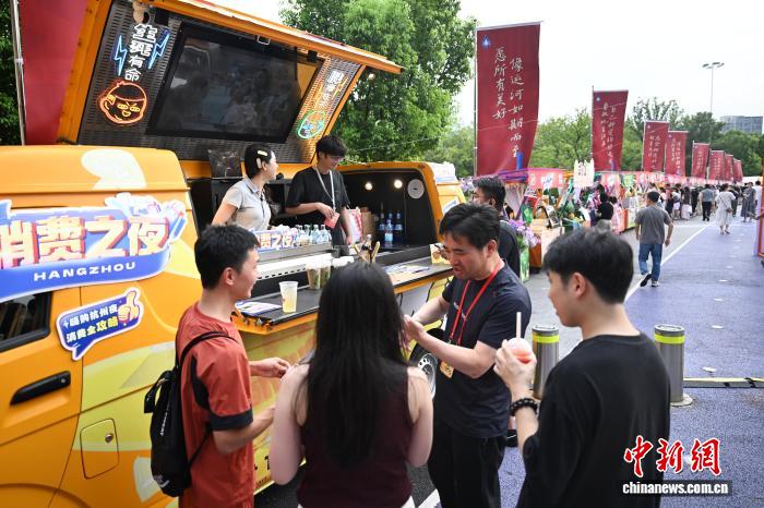 7月27日,市民进入"浙BA·运河潮"活力市集。近日,浙江省城市篮球联赛(浙BA)杭州赛区半决赛、决赛陆续举办,民众观赛热情高涨。当地借力篮球运动热,打造“票根经济”“特色市集”等,带动相关消费。中新社记者王刚 摄