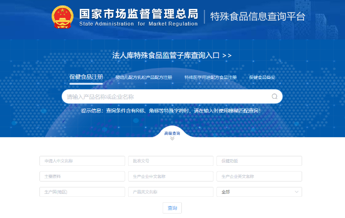 市场监管总局官网特殊食品信息查询平台