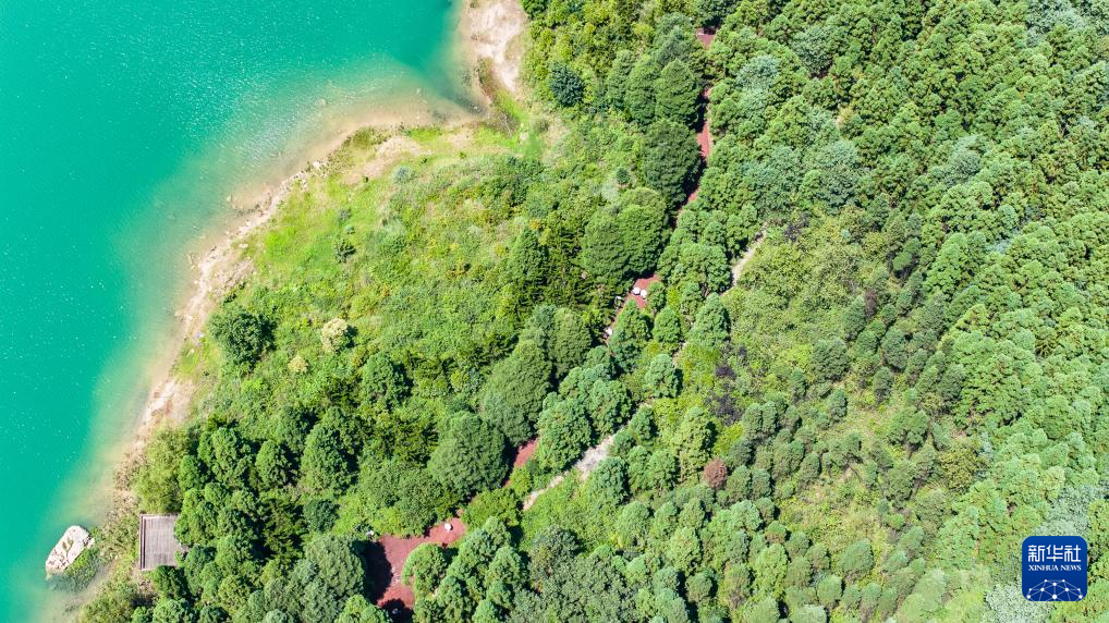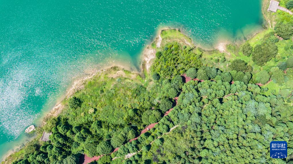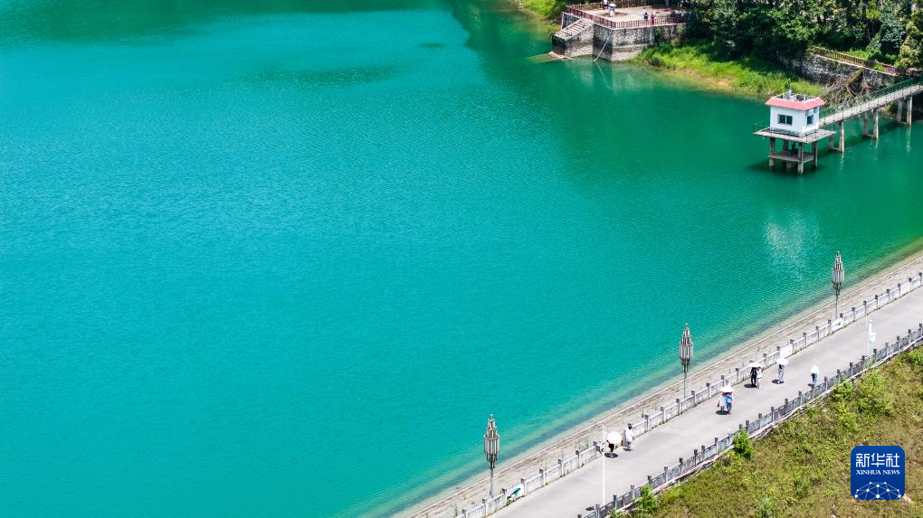 7月30日,游客在瑶池公园栈道上漫步(无人机照片)。