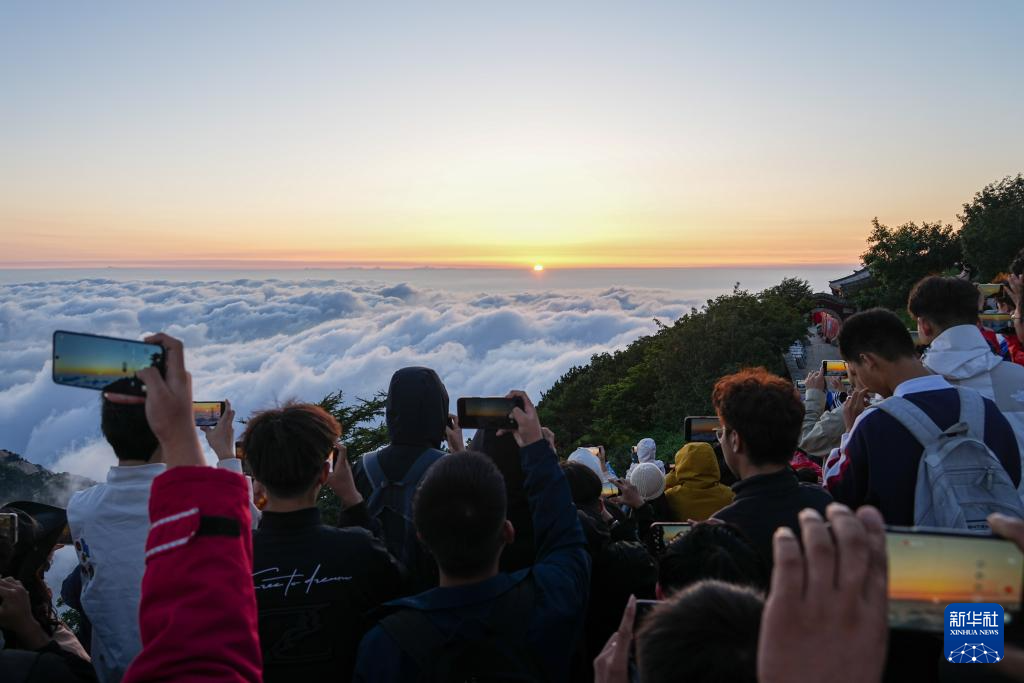 7月31日,游客在泰山景区日观峰观看日出。