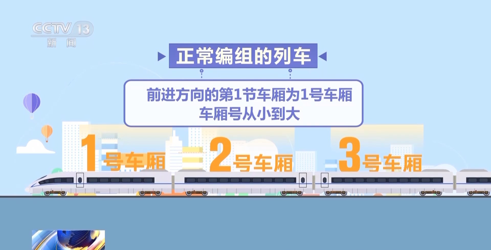 国铁太原局大同南站客运值班员张家莺:现在大多数车站都在旅客进入站台处的LED屏上显示车厢排序信息,旅客通过排序能判断自己的车厢是应该往前走还是往后走。很多高铁站还设置有黄、绿、蓝、紫等颜色的地标,地标上标注的数字代表列车停靠站台后车厢所在的位置。
