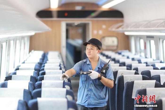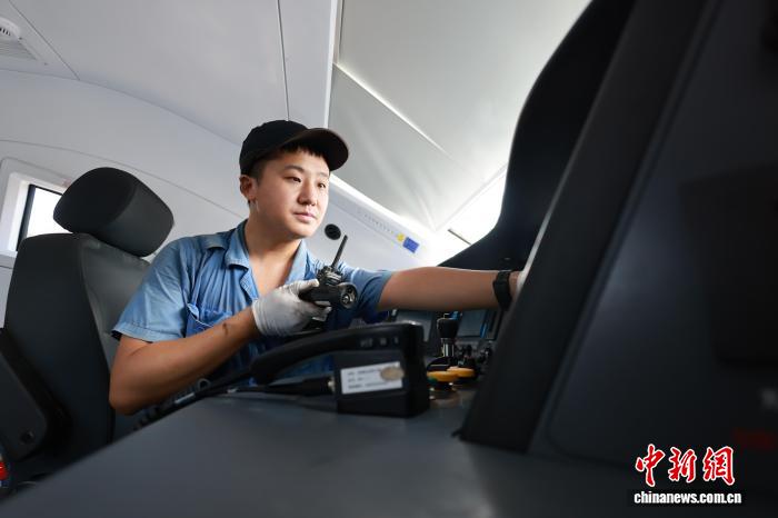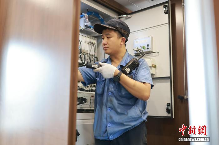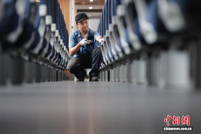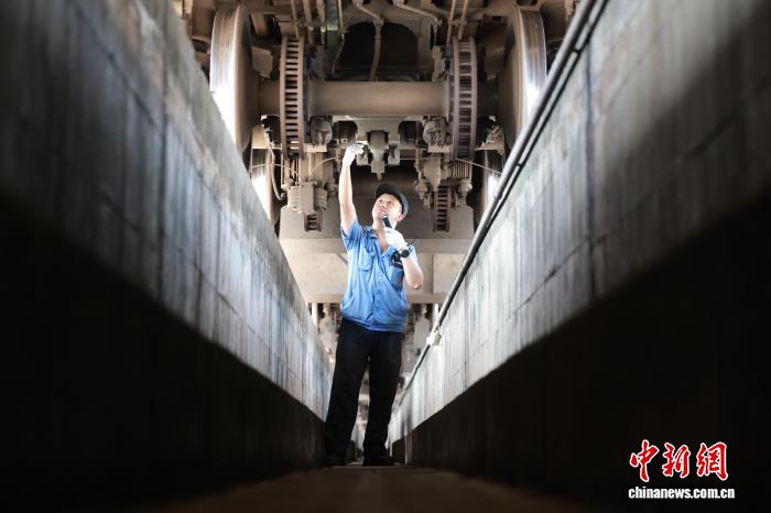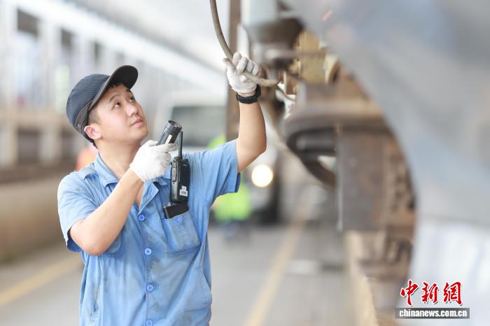 图为地勤机械师周永健正在检修列车。苏志刚 摄