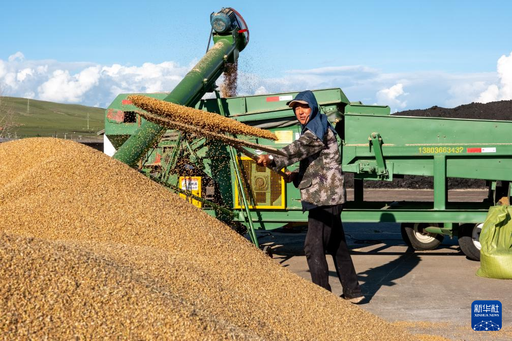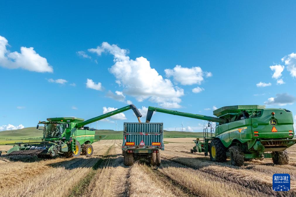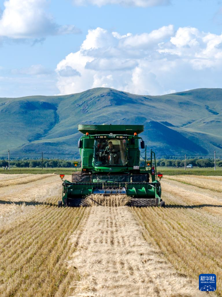 近日,位于内蒙古呼伦贝尔市额尔古纳市的呼伦贝尔农垦拉布大林农场19.22万亩小麦迎来丰收季,当地农民抢抓农时,以大规模机械化的方式开展收割、晾晒作业。