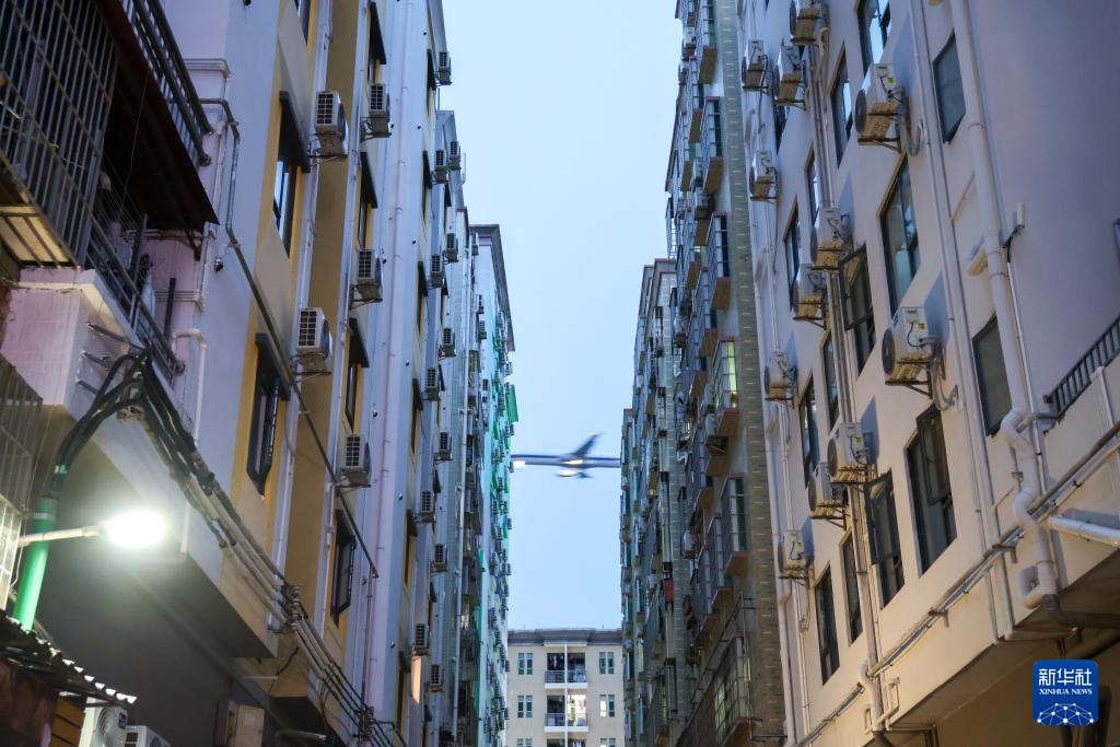 8月19日,在深圳市宝安区,一架飞机飞过韩广滨一家暂住的公寓。