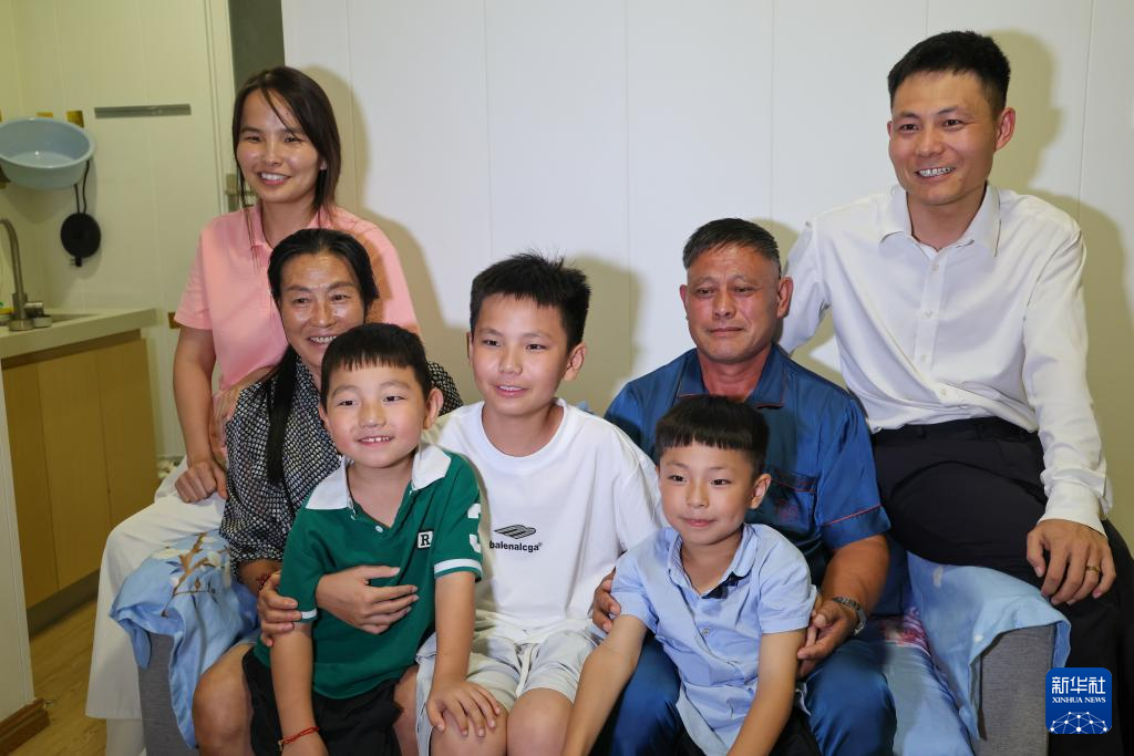 8月19日,滴滴司机韩广滨(后右一)和家人在公寓合影。