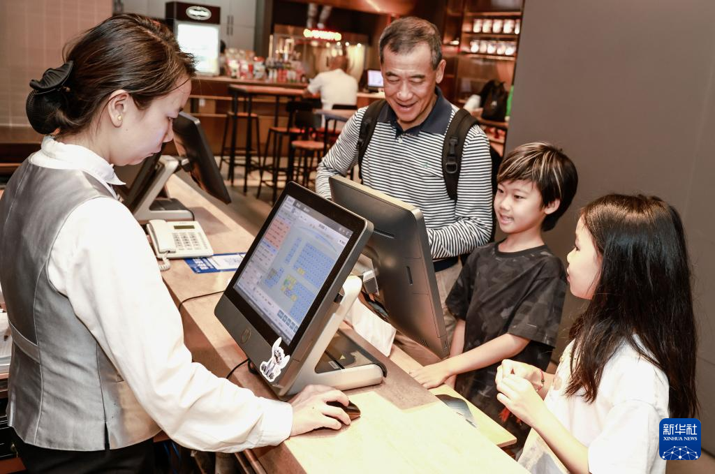 8月25日,在武汉市百丽宫影城,家长带着孩子购买《浪浪山小妖怪》电影票。