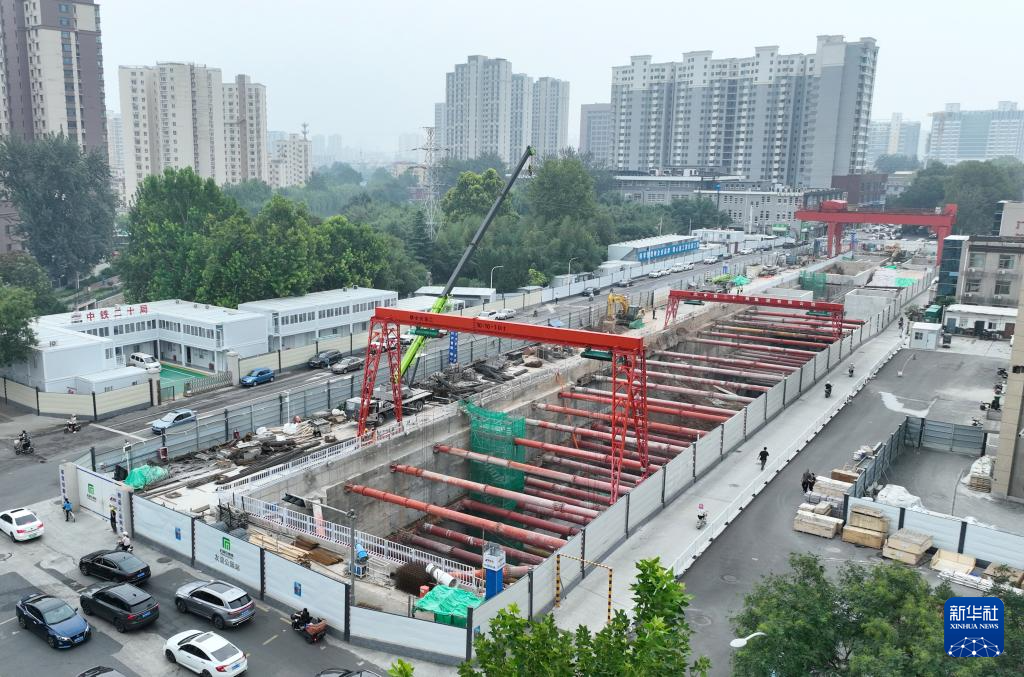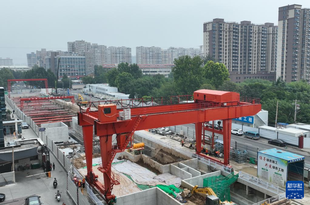 8月27日拍摄的石家庄市地铁5号线一期工程施工现场(无人机照片)。