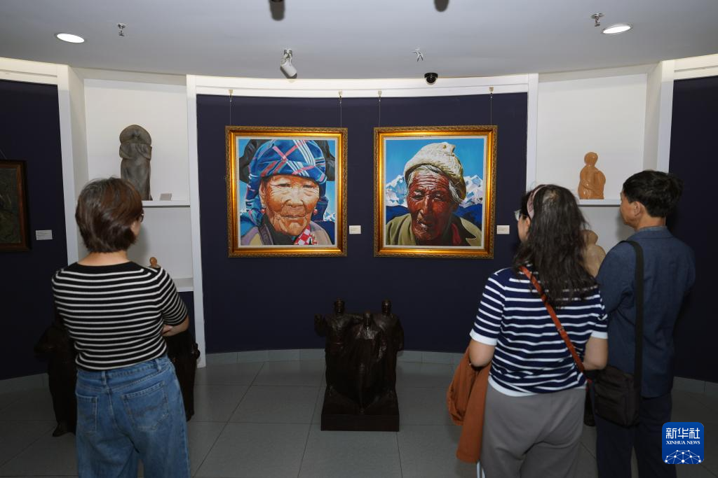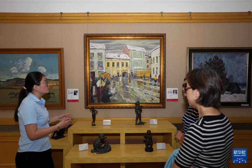 人们在位于哈尔滨市平原街的韩建民中俄油画收藏馆参观(9月7日摄)。