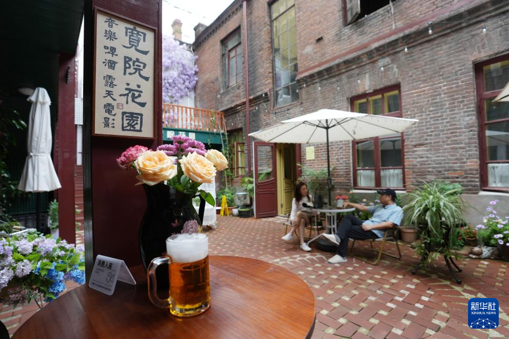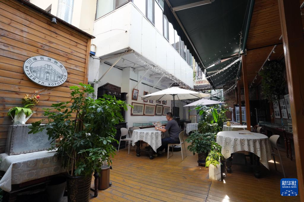人们在位于哈尔滨市西十三道街的宽街博物馆后院小憩(9月3日摄)。