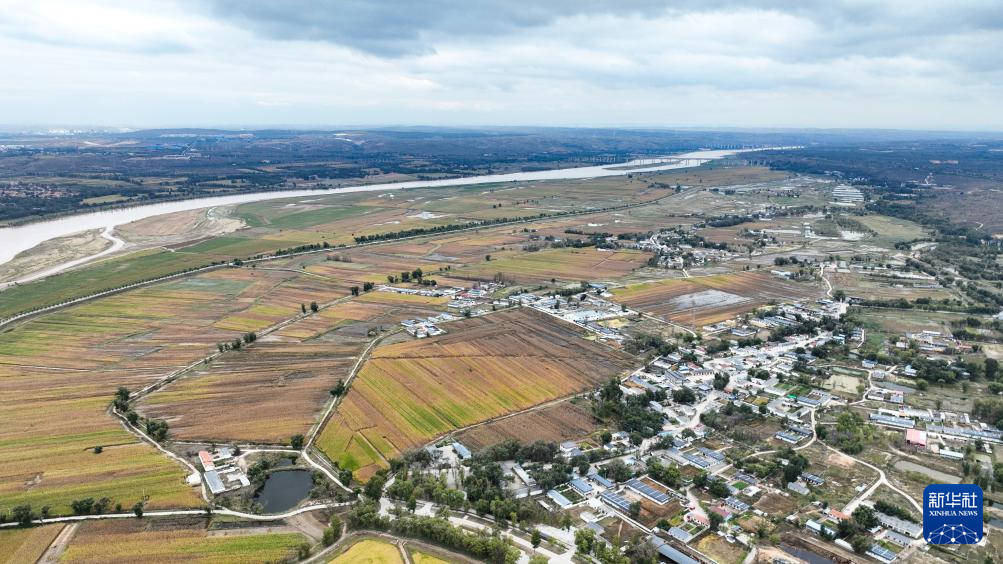 秋日,内蒙古鄂尔多斯市准格尔旗黄河两岸稻田金黄,一派丰收景象。