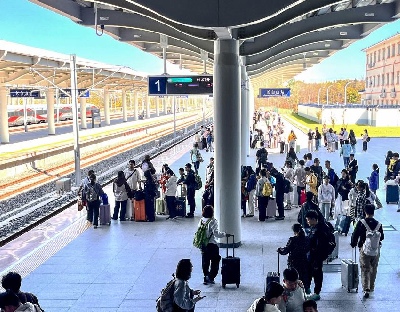 10月1日,娄底站组织了一场“致敬祖国盛世华诞”主题快闪活动。车站工作人员与广大旅客一起用歌声热烈庆祝中华人民共和国成立76周年。