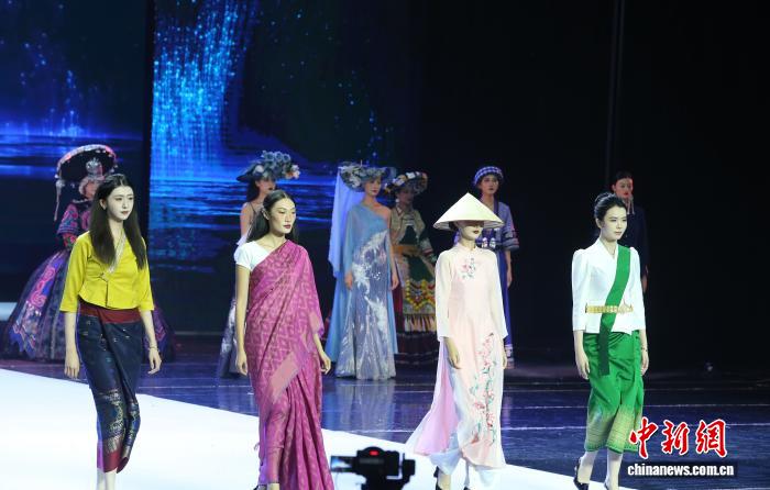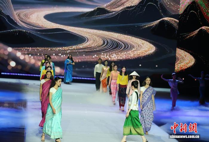 10月13日晚,模特展示南亚、东南亚国家服装。中新社记者黄兴鸿 摄