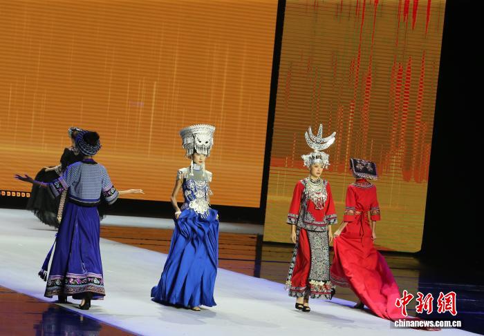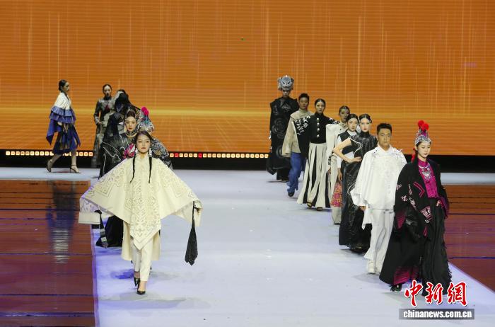 10月13日晚,模特展示非遗精品服装服饰。中新社记者 黄兴鸿摄