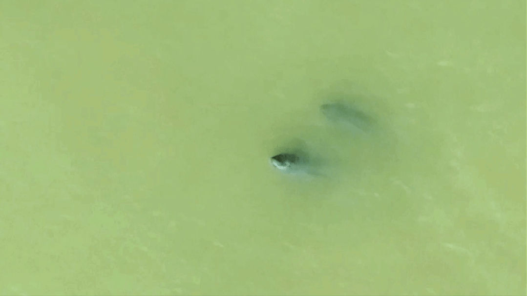 “江豚野外产仔十分隐蔽,不易被人发现,拍摄到这一画面也是很罕见。在那过后几天,我们又通过航拍镜头再次拍摄到了这对母子。幼豚寸步不离黏着母豚,十分可爱。”余会功介绍。