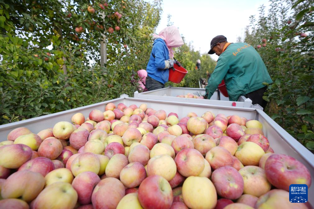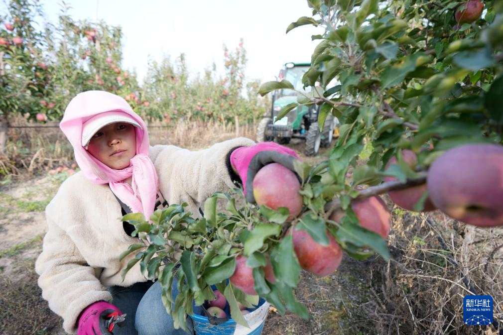 农户在中卫市沙坡头区“旱苹果”种植基地采摘苹果(10月25日摄)。
