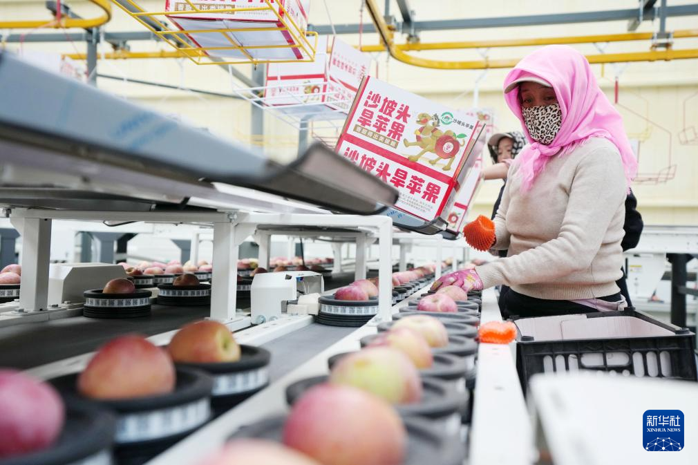 工作人员在中卫市沙坡头区一家加工企业分拣“旱苹果”(10月25日摄)。