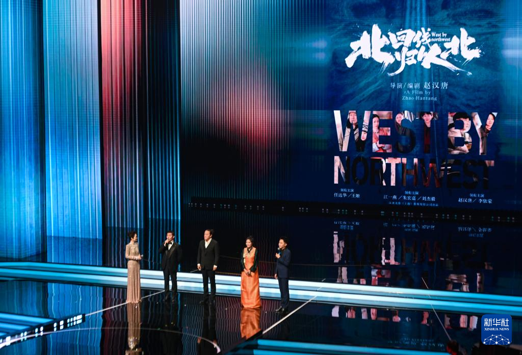 11月11日晚,新片新作《北回归线以北》主创人员在2025年中国金鸡百花电影节开幕式上进行推介。