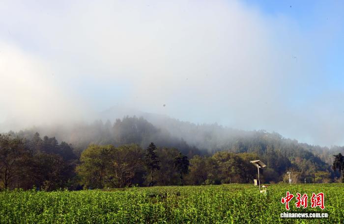 图为茶园里云雾缭绕。中新网记者 张丽君 摄