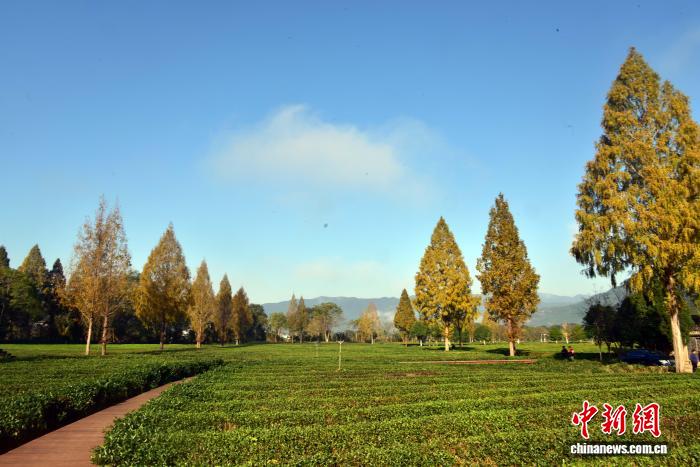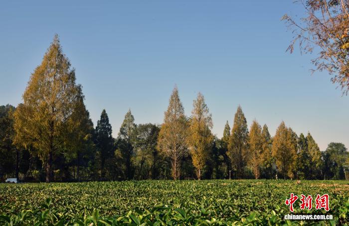 图为茶园里水杉渐红。中新网记者 张丽君 摄