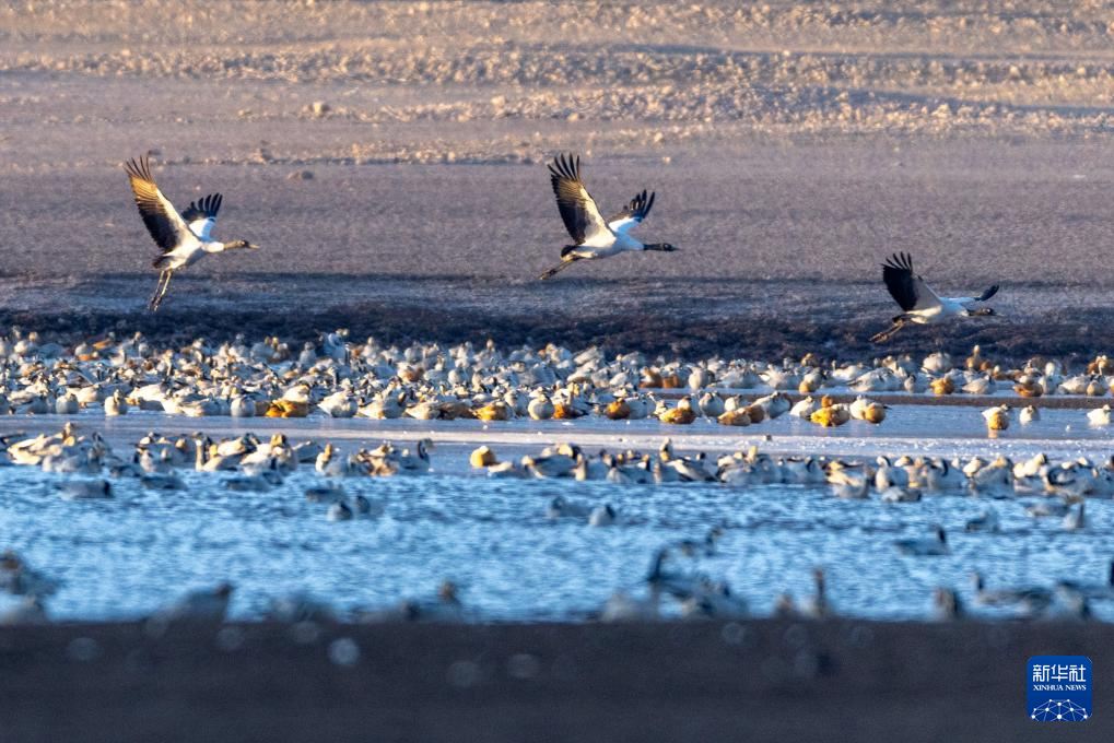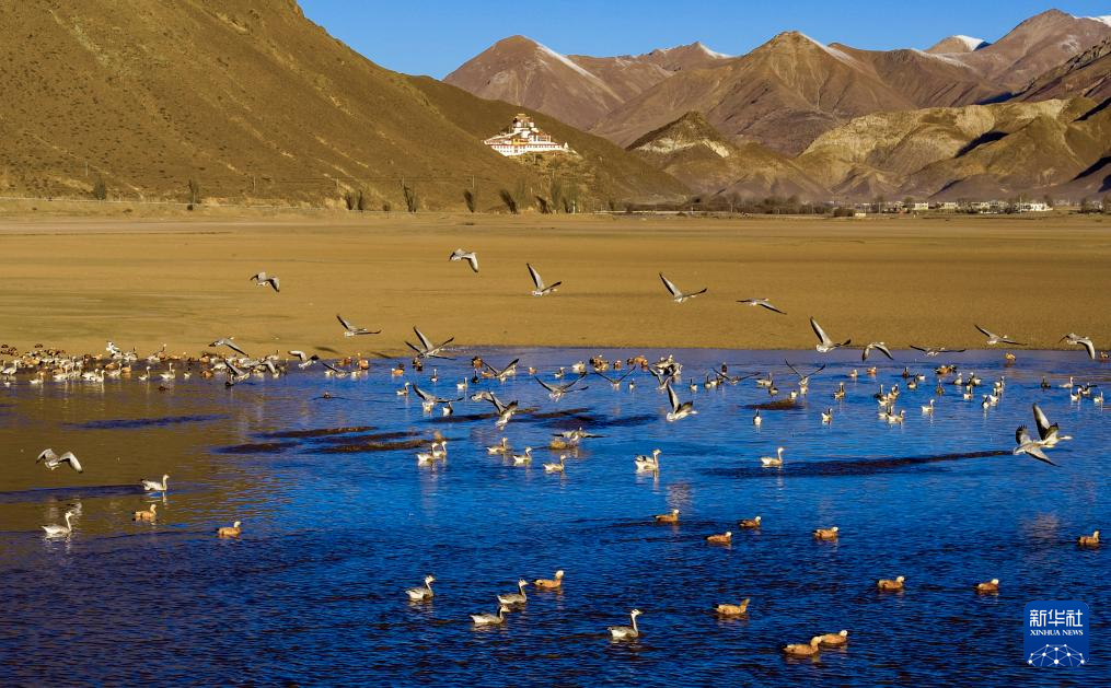 冬日时节,拉萨市林周县迎来大批越冬候鸟,黑颈鹤、斑头雁、赤麻鸭等候鸟在河谷、湖泊等地觅食、休憩。