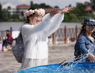 云南昆明:泼水节启幕 吸引游客共赴欢乐