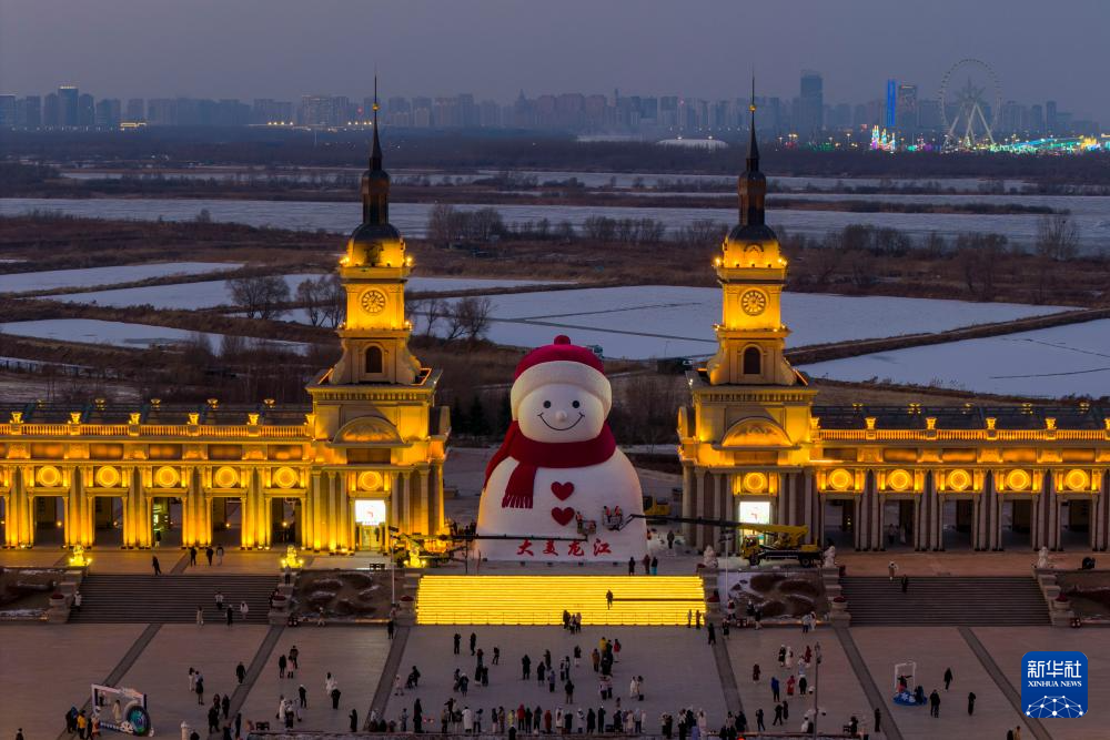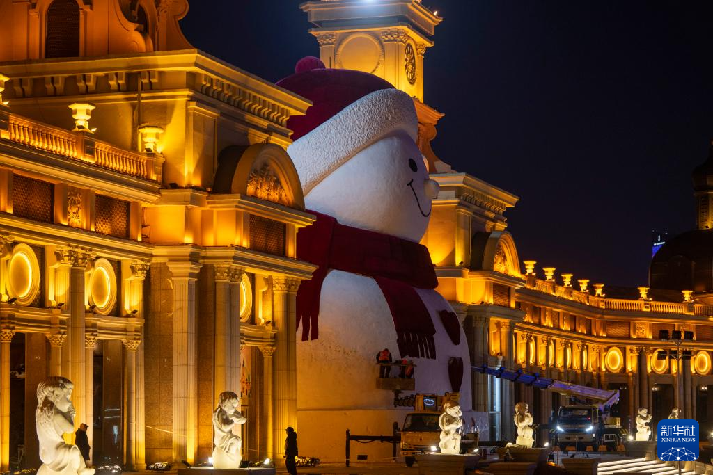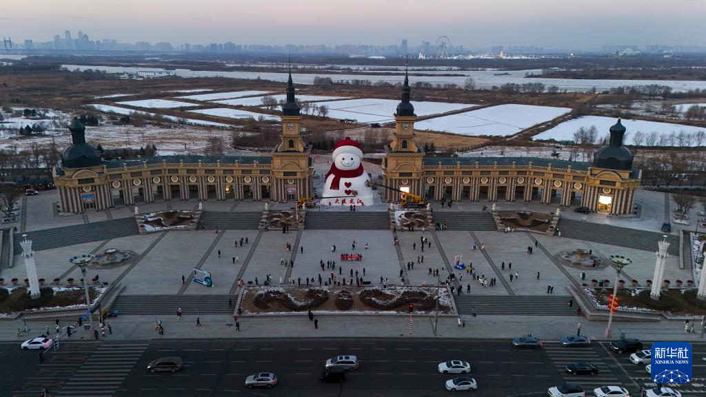 这是12月15日在哈尔滨市群力音乐公园拍摄的大雪人(无人机照片)。