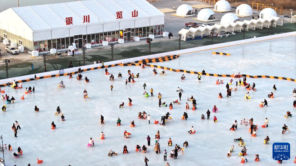 1月17日,人们在银川文旅集团览山公园落日冰场玩耍。