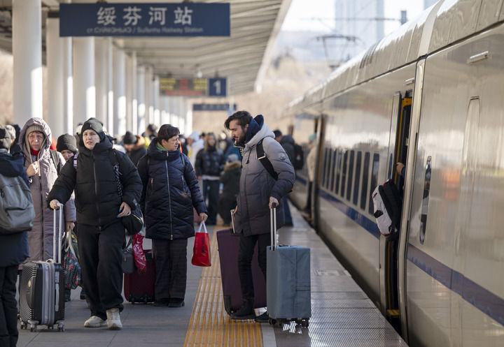 2026年1月8日,在黑龙江绥芬河火车站,游客下车准备出站。新华社记者 张涛 摄