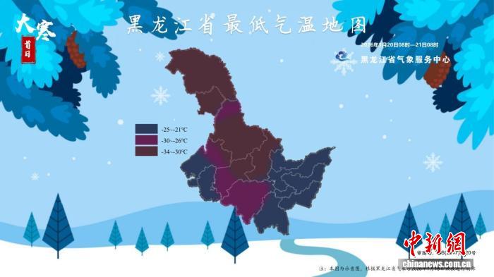 黑龙江省气象台发布的天气预报信息显示,“大寒首日”白天最高气温,大兴安岭、黑河南部、伊春、齐齐哈尔北部、绥化北部、哈尔滨-20℃至-18℃,其他地区-17℃至-15℃。“大寒首日”夜间最低气温,大兴安岭北部、伊春北部-36℃至-34℃,大兴安岭南部、黑河南部、伊春南部-32℃至-30℃,黑河北部、齐齐哈尔北部、绥化、哈尔滨、鹤岗-29℃至-27℃,其他地区-25℃至-23℃。
