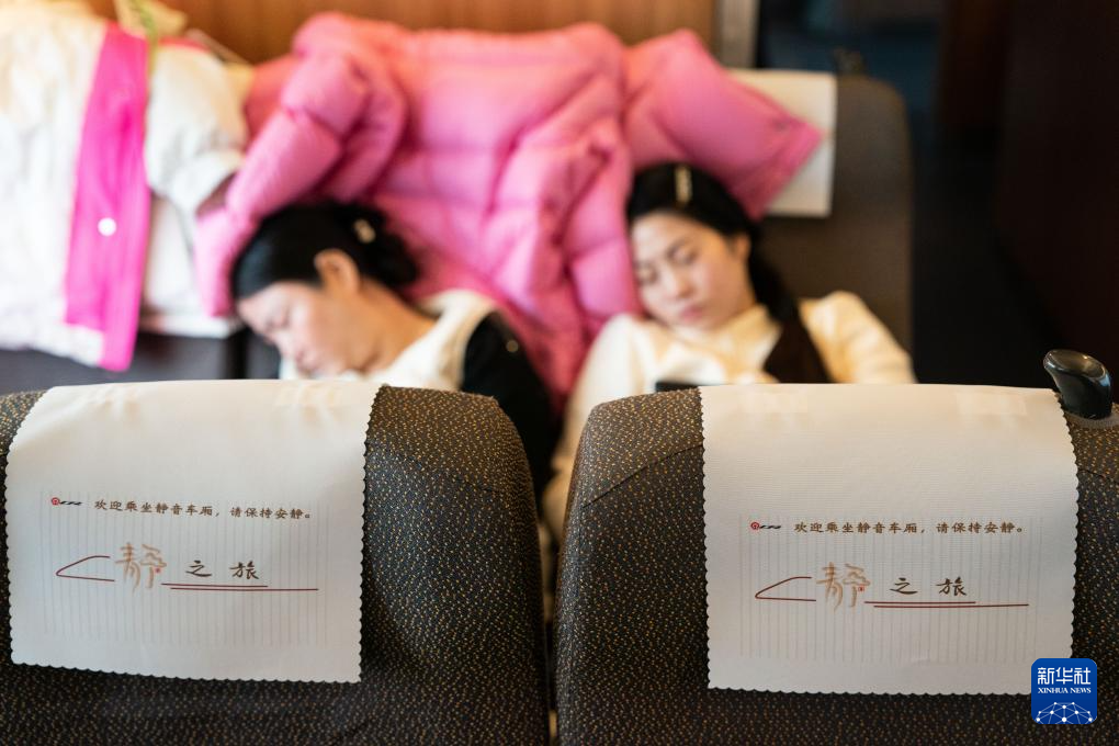 2月1日,乘客在G54次列车静音车厢内。