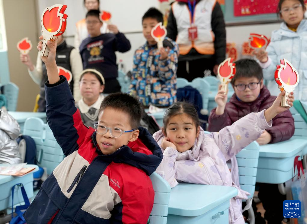 2月2日,在上海市普陀区长征镇办班点,寒托班的小学生参与安全常识答题闯关。