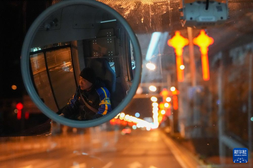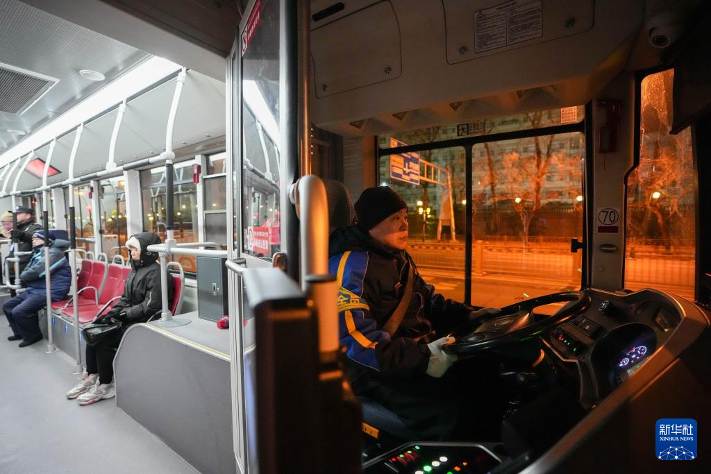 2月6日5时,夜班公交司机王佳京驾驶夜1路行驶在建国路上。